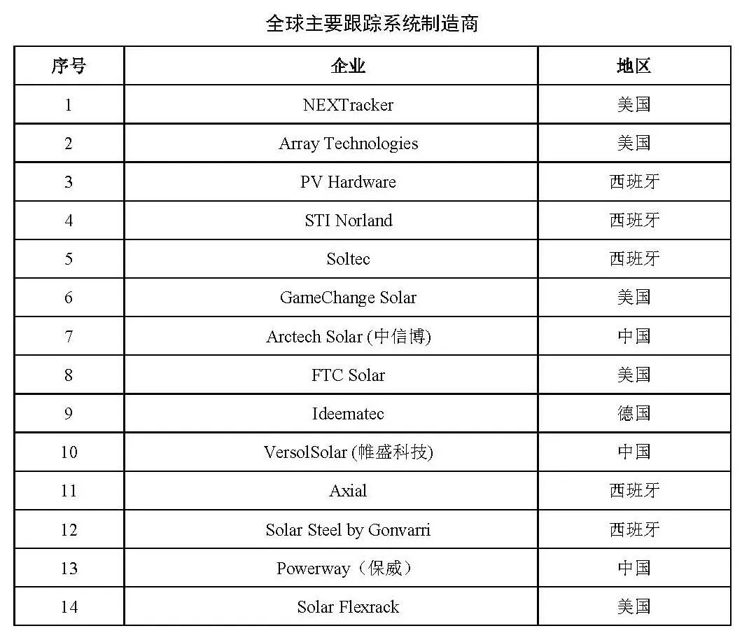 中国跟踪支架的应用可以追溯到领跑者项目,但早期的跟踪支架产品质量,可靠性层次不一,使得早期的项目故障频发,一部分业主对跟踪支架留下了较差的印象。反观海外市场,NEXTracker、Array Technologies、PV Hardware等国外龙头企业起步较早,经历了一系列测试以及技术和项目的沉淀,产品进入成熟期,长期占据跟踪支架龙头地位。从全球近年出货情况来看,跟踪支架企业更符合本地化趋势,全球出货较为领先的跟踪支架企业均聚集在美国(5家),欧洲(6家)和中国(3家)。并且,中国跟踪支架企业与国际品牌仍存在一定的差距,但伴随未来几年特高压线路,“光伏+”场景的植入,必将带动中国跟踪支架企业缩小与海外头部企业之间的差距。